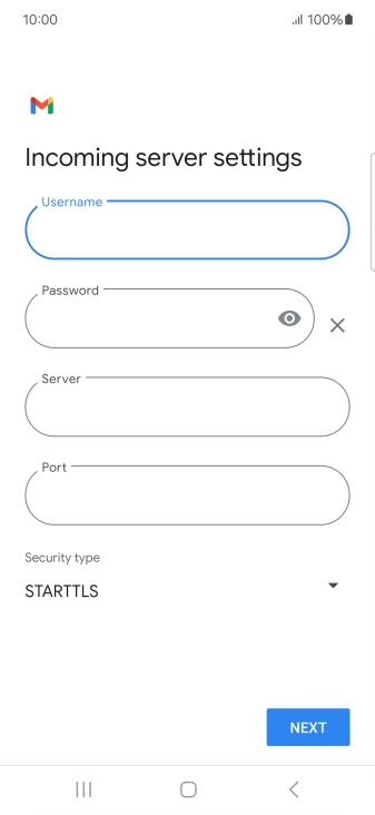 Press the field below "Server" and key in the name of your email provider's incoming server.