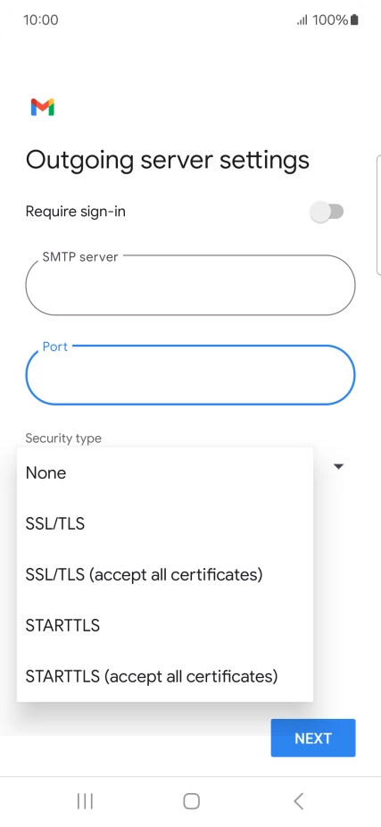 Press the field below "SMTP server" and key in mail.vodafone.ie.