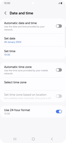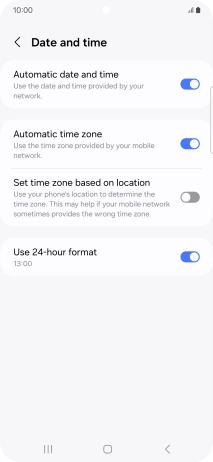 Press the indicator next to "Automatic date and time" to turn on the function.