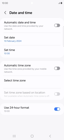 Press the indicator next to "Automatic date and time" to turn on the function.