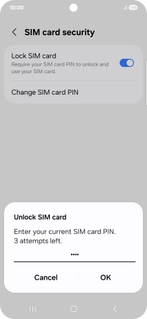 Press the indicator next to "Lock SIM card" to turn the function on or off.