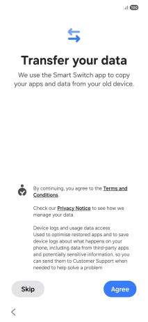 You can transfer the contents of another phone to your phone when it's activated for the first time and after a factory reset. When this screen is displayed, your phone is ready to transfer contents from another phone.