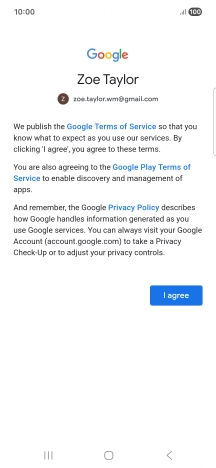 Press I agree and follow the instructions on the screen to select settings for your Google account.