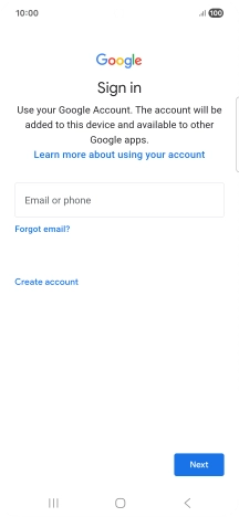 If you don't have a Google account, press Create account and follow the instructions on the screen to create an account.
