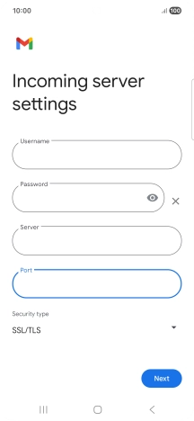 Press the field below "Server" and key in the name of your email provider's incoming server.