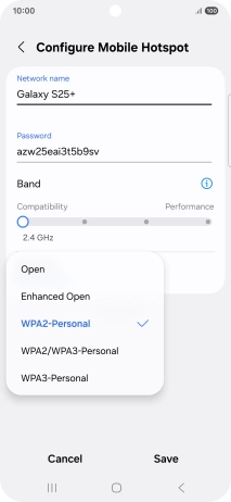 Press WPA3-Personal to password protect your Wi-Fi hotspot.