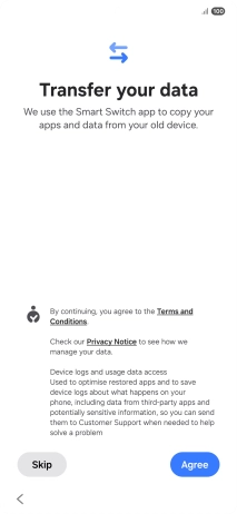 Press the required setting and follow the instructions on the screen to transfer the content from another phone.