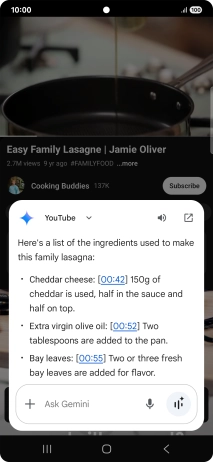 Using Gemini, you can ask questions about the content of a YouTube video.