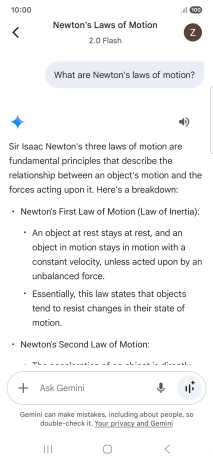The answer from Gemini to your question is displayed.