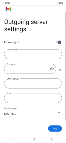 11. Enter outgoing server