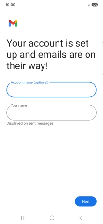 If this screen is displayed, you email account has been recognised and set up automatically. Follow the instructions on the screen to key in more information and finish setting up your phone.