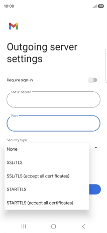 11. Enter outgoing server