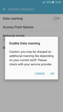 Press the indicator next to "Data roaming" to turn the function on or off.