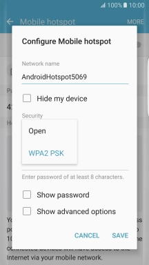 Press WPA2 PSK to password protect your Wi-Fi hotspot.