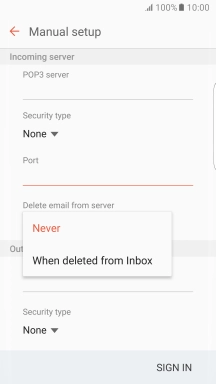 Press When deleted from Inbox to delete email messages on the server when you delete them on your phone.