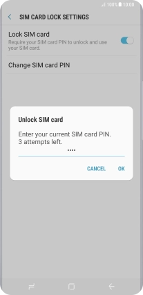 Press the indicator next to "Lock SIM card" to turn the function on or off.