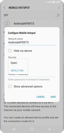 Press WPA2 PSK to password protect your Wi-Fi hotspot.