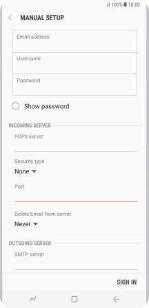 If this screen is displayed, you email account has been recognised and set up automatically. Follow the instructions on the screen to key in more information and finish setting up your phone.