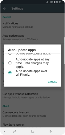 To turn on automatic update of apps using mobile network, press Auto-update apps at any time. Data charges may apply..