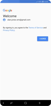 Press I AGREE and follow the instructions on the screen to select settings for your Google account.