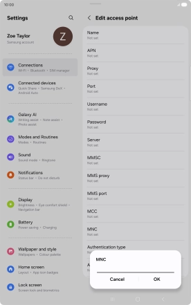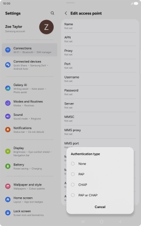7. Enter APN type