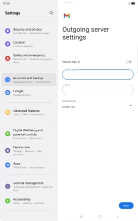 Press the field below "SMTP server" and key in mail.vodafone.ie.