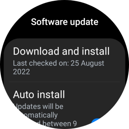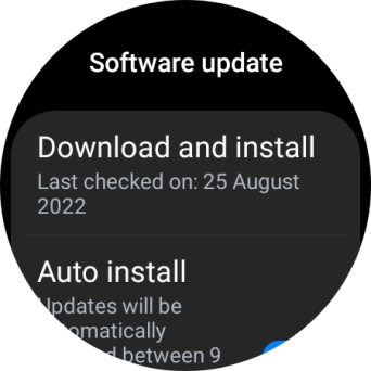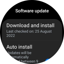 Press Download and install. If a new software version is available, it's displayed. Follow the instructions on the screen to update the smartwatch software.