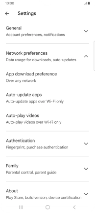 To turn on automatic update of apps using Wi-Fi, press Over Wi-Fi only.