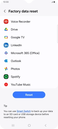 Press Delete all. Wait a moment while the factory default settings are restored. Follow the instructions on the screen to set up your phone and prepare it for use.