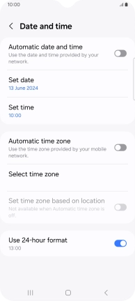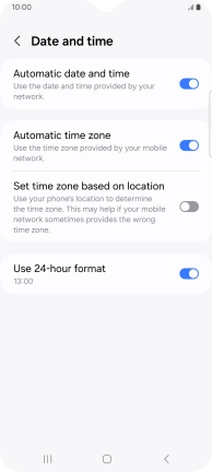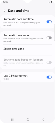 Press the indicator next to "Automatic date and time" to turn on the function.