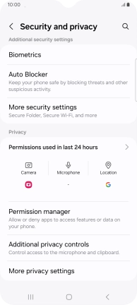 Press Security and privacy.