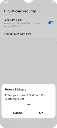 Press the indicator next to "Lock SIM card" to turn the function on or off.