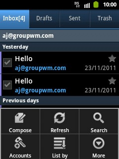Press the field next to Vodafone Mail to mark the field and to activate the data connection.