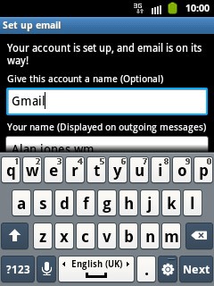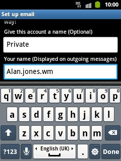 Press the field below Give this account a name (Optional) and key in a name for your email account (such as Private or Work).