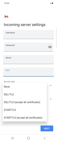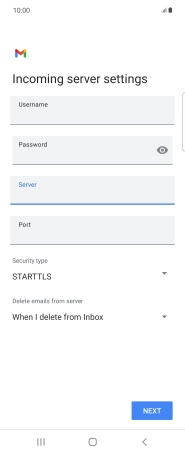 Press the field below "Server" and key in the name of your email provider's incoming server.