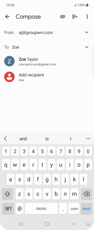 Press the text input field and write the text for your email message.