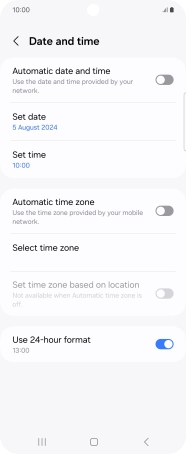 Press the indicator next to "Automatic date and time" to turn on the function.