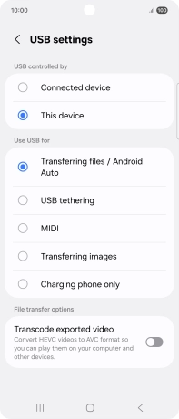 2. Choose setting for USB connection