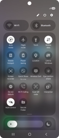To use Galaxy AI to translate a conversation, slide your finger downwards starting from the top right side of the screen.