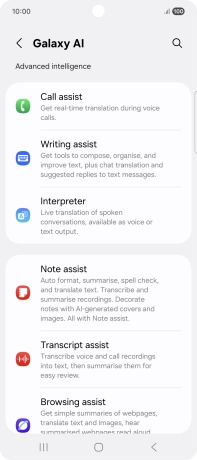 To use Galaxy AI for translation during a call, press Call assist.