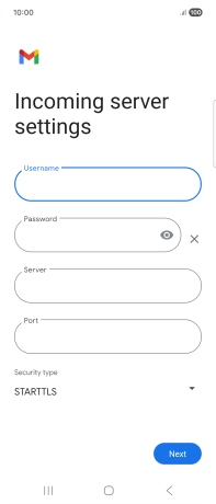 Press the field below "Server" and key in the name of your email provider's incoming server.