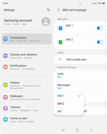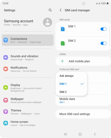 Press the required SIM.