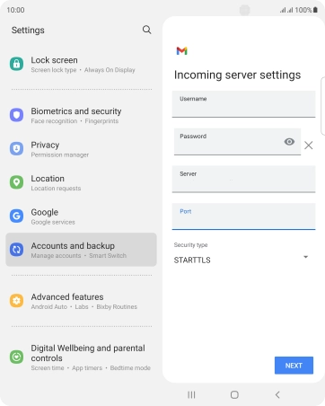 Press the field below "Password" and key in the password for your email account.