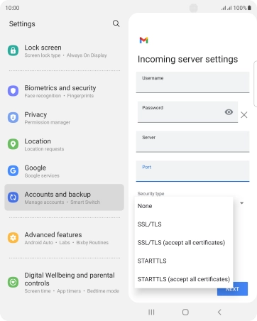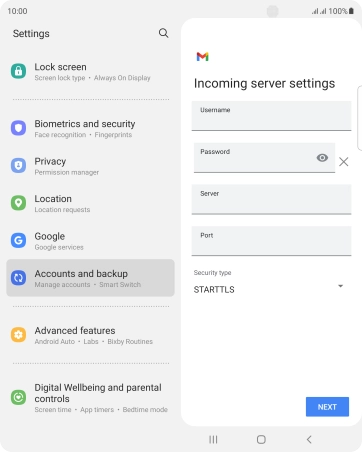 Press the field below "Server" and key in the name of your email provider's incoming server.