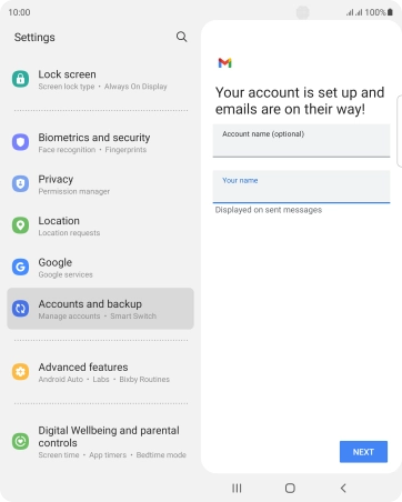 If this screen is displayed, you email account has been recognised and set up automatically. Follow the instructions on the screen to key in more information and finish setting up your phone.