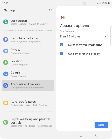Press the field next to "Notify me when emails arrive" to turn the function on or off.