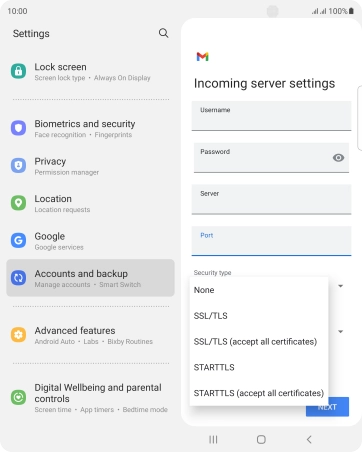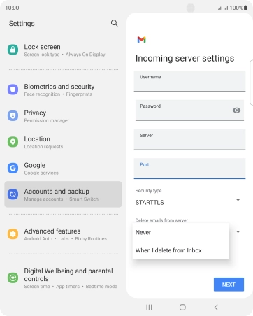 Press the field below "Server" and key in the name of your email provider's incoming server.
