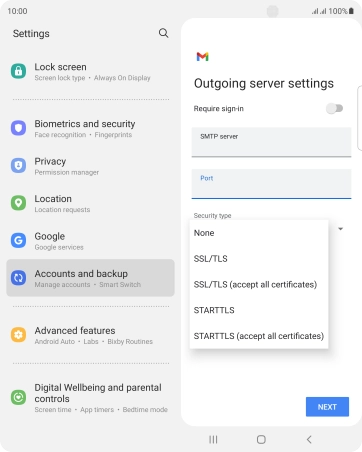 Press the field below "SMTP server" and key in mail.vodafone.ie.