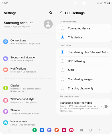 2. Choose setting for USB connection