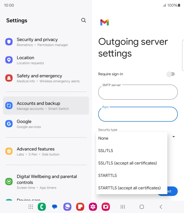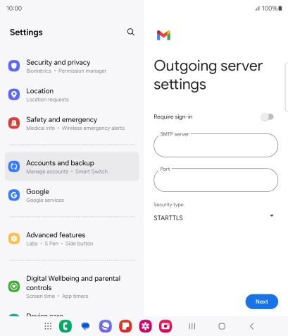 Press the field below "SMTP server" and key in mail.vodafone.ie.